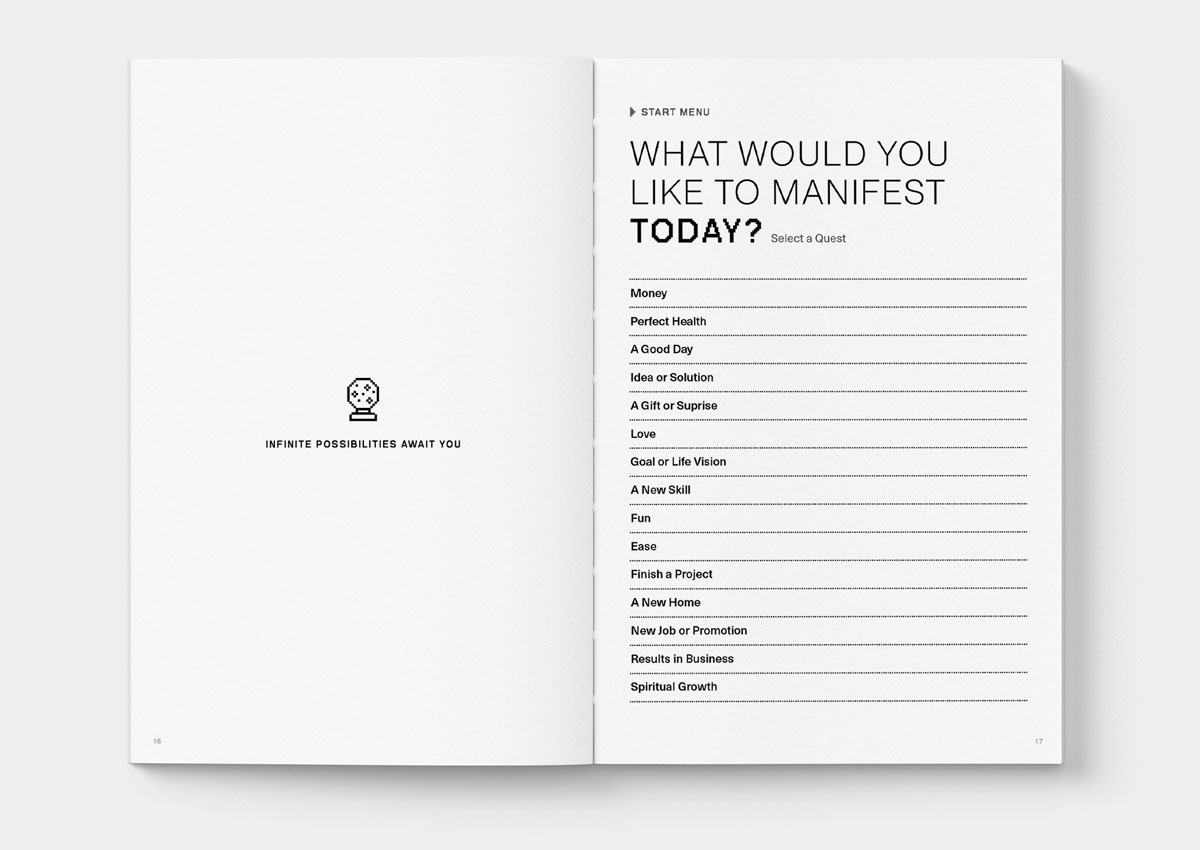 Open to the Start Menu to select what you’d like to manifest today. Each desire is structured as a Quest.
